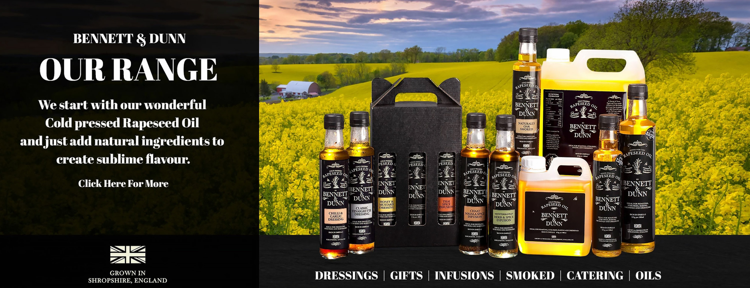 Bennett & Dunn cold pressed Rapeseed oil is produced by husband and wife team Rupert and Tracey Bennett. Rupert takes great pride in producing a superior quality product.