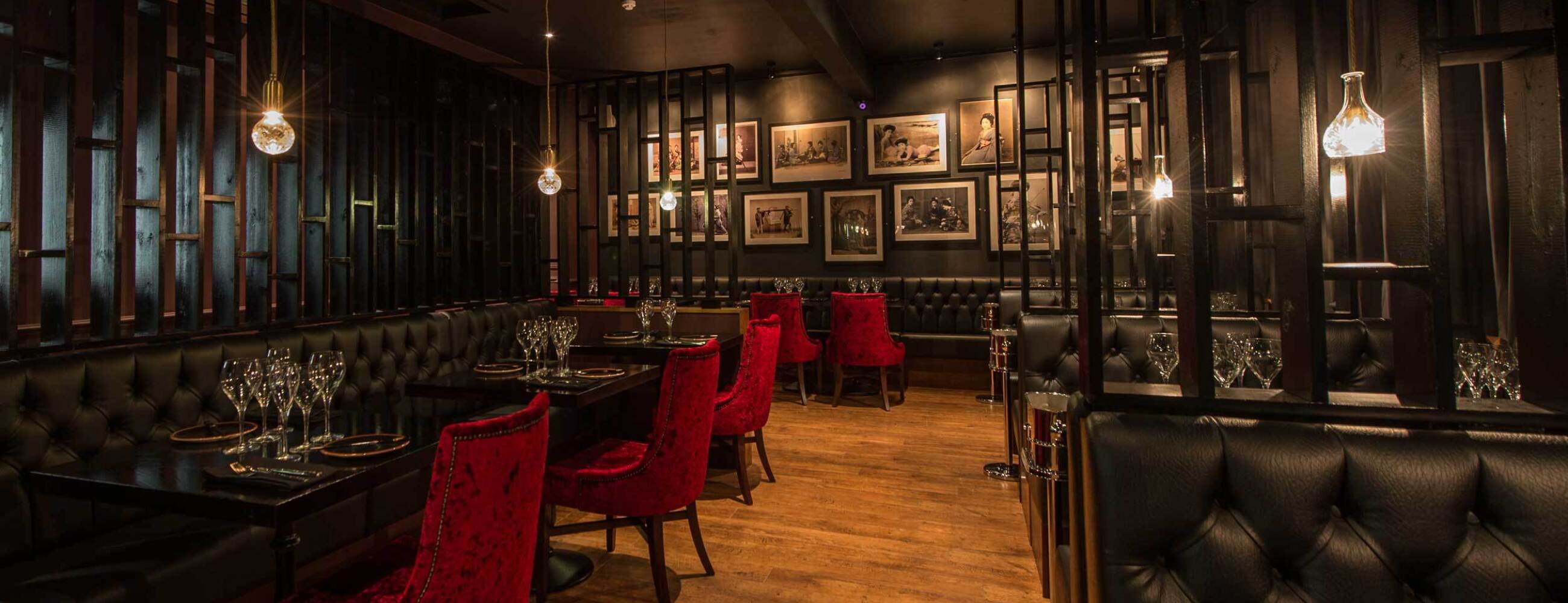 Crushed red velvet seating and geisha artwork are just a taste of what you can expect from a sensual dining experience inside the House Of The Rising Sun.